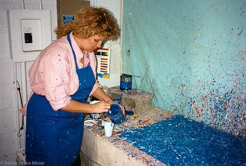 I love to tell the story of my very early, first inspiration. I was six years old. My father, a Navy Seabee, was stationed in Paris, France, I went to first and second grade there. I was incredibly fortunate to go on field trips and painting excursions. Imagine a bunch of little first graders with their little easels, sitting in the grass and painting the Eiffel Tower. That is one of my most precious memories. One such trip included a visit to see the Mona Lisa. It did not have the bullet-proof security it has today, so as we went past it, quietly, in single file, and strongly warned not to touch anything, I just had to do it. Yes, I reached out my grubby little hand and touched the Mona Lisa, for which I was properly reprimanded. But it was worth it! Ever since that day I have wanted to touch art. I have to put my hands in my pockets at museums and galleries to avoid being thrown out. I have created art that is meant to be touched and I encourage people to touch it.
